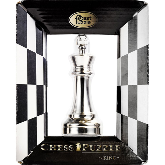 Das Cast Chess Puzzle "King" (König) in Silber ist Teil der sechsteiligen Chess-Reihe von Hanayama. Jede Schachfigur enthält im Inneren eine Münze. Aufgabe ist es, die Münze heraus zu bekommen. Zu Lösen ist ein einzigartiges, geheimes System, das sich bei jeder der sechs Schachfiguren unterscheidet.