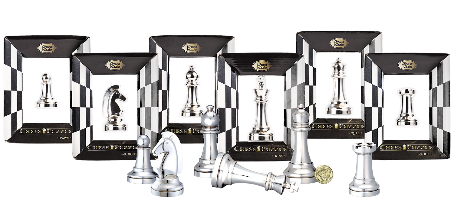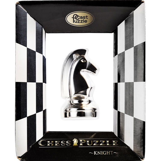 Das Cast Chess Puzzle "Knight" (Springer) in Silber ist Teil der sechsteiligen Chess-Reihe von Hanayama. Jede Schachfigur enthält im Inneren eine Münze. Aufgabe ist es, die Münze heraus zu bekommen. Zu Lösen ist ein einzigartiges, geheimes System, das sich bei jeder der sechs Schachfiguren unterscheidet.