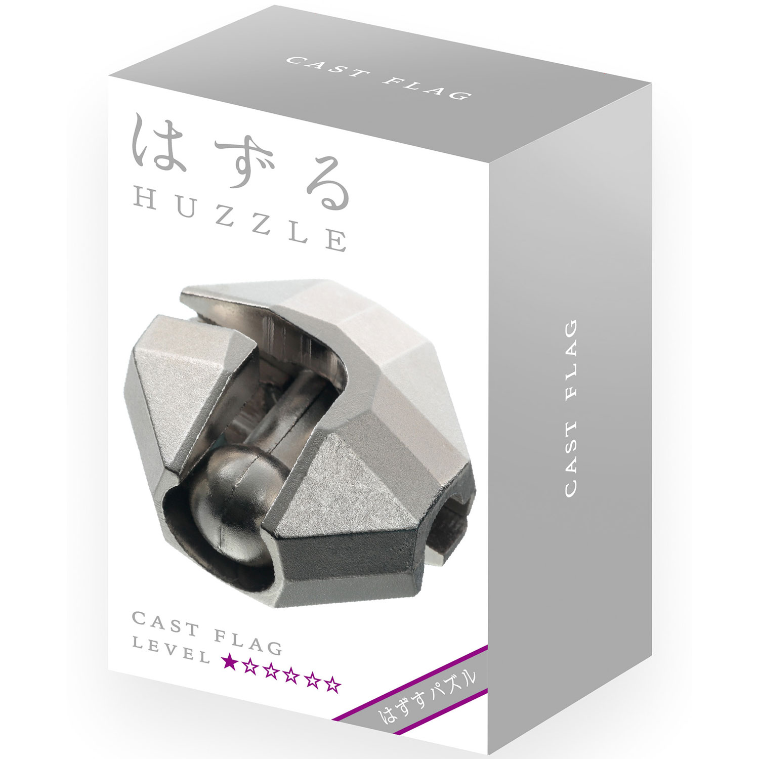 Huzzle Cast Puzzle Flag als Neuauflage in Huzzle-Verpackung. Aufgabe des verzwickten Metallpuzzles ist es, die Teile voneinander zu lösen und wieder zusammenzufügen.
