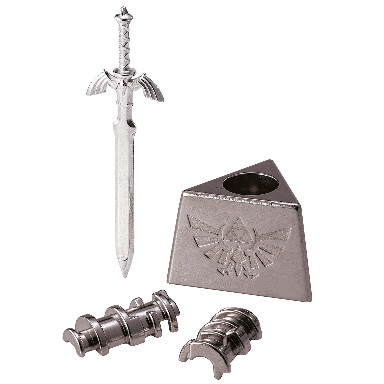 Das Master Sword aus der limitierten The Legend of Zelda Serie von Huzzle. Dieses außergewöhnliche Puzzle ermöglicht es Ihnen, das Meisterschwert zu drehen, von seinem Sockel zu heben und es dann wieder in seine ursprüngliche Position zurückzubringen. Schaffst du das Kunststück, das Schwert zu ziehen, genau wie in der Welt der Spiele? Das beeindruckende Gewicht des Metalls verleiht ihm einen Hauch von Erhabenheit und macht es zu einem atemberaubenden Dekorationsstück.